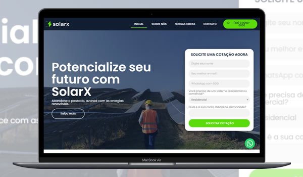 Desenvolvido especialmente para o segmento Energia Solar, mas com design versátil que se adapta a qualquer ramo de atividade, este template pronto vai ajudar você a ganhar tempo, produtividade e credibilidade online.